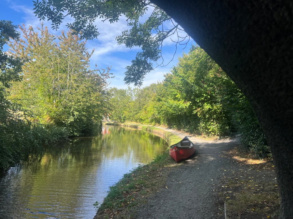 Beyond the crossing, the path widens – water holding the sky, the canoe waiting for what comes next.